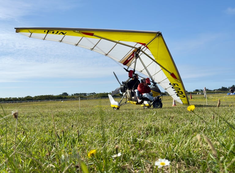 Introductory flights / Discovery flights: On tandem weight-shift microlight aircraft with experienced pilots, to discover the Côte des Isles, coastal landscapes, dunes, and the bocage.